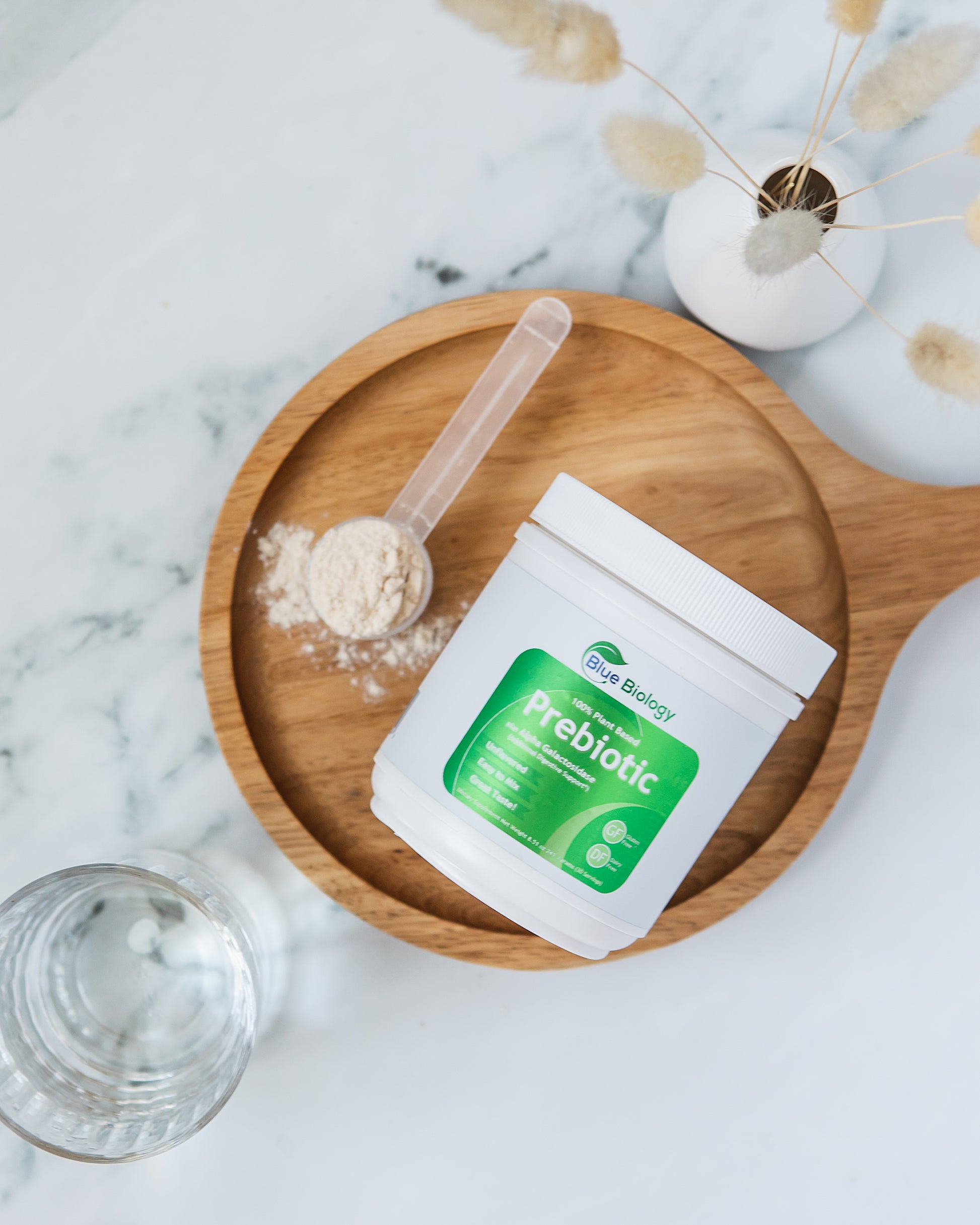 Prebiotics are natural fibers which serve as a source of fuel for probiotics. By fueling your healthy gut bacteria, you can exponentially increase the effectiveness of your probiotic supplement. BlueBiology Prebiotic powder is also a great source of both healthy soluble and insoluble fiber for any diet.