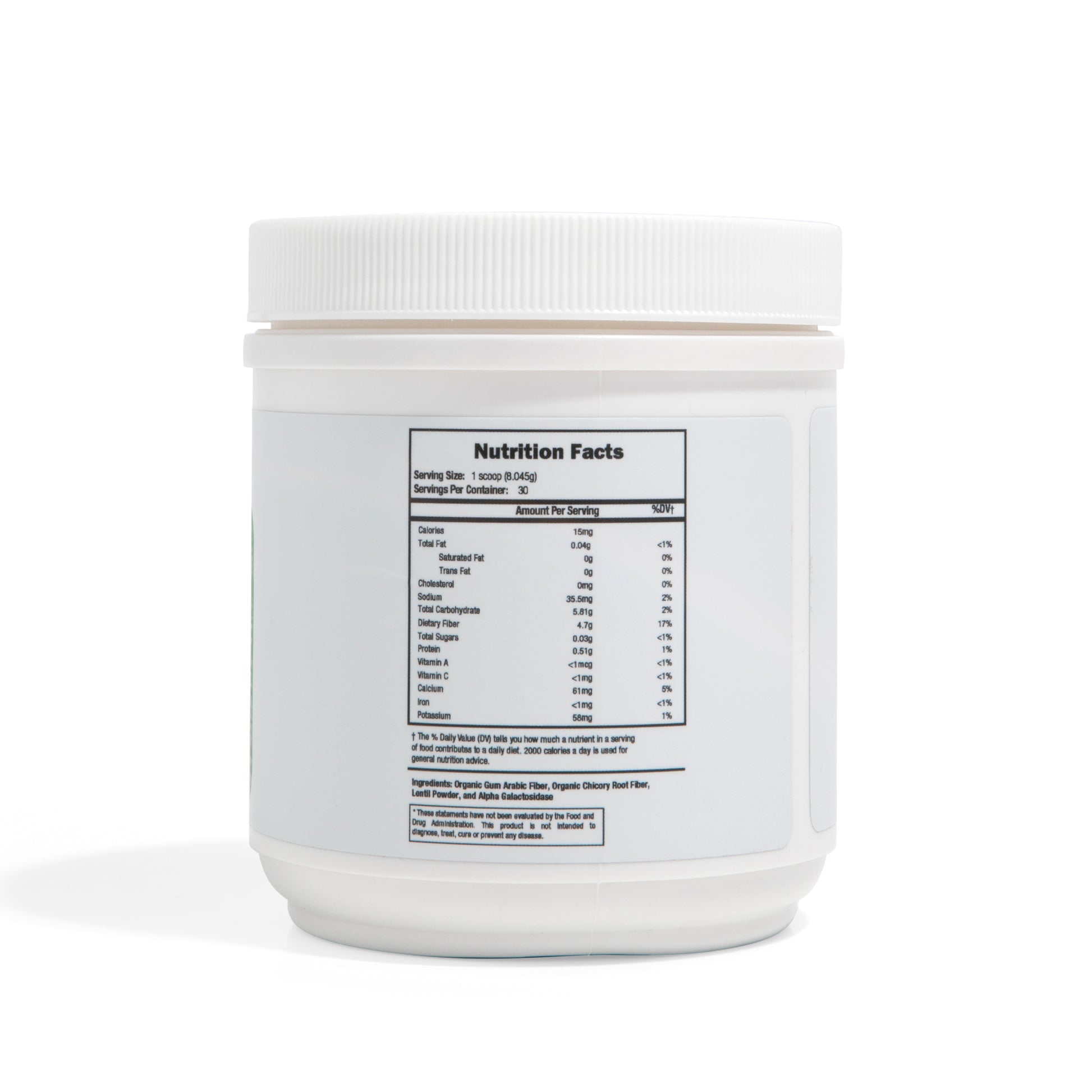 | Ingredients: Organic Gum Arabic Fiber, Organic Chicory Root Fiber, Lentil Powder, Alpha Galactosidase † Daily Value Not Established |