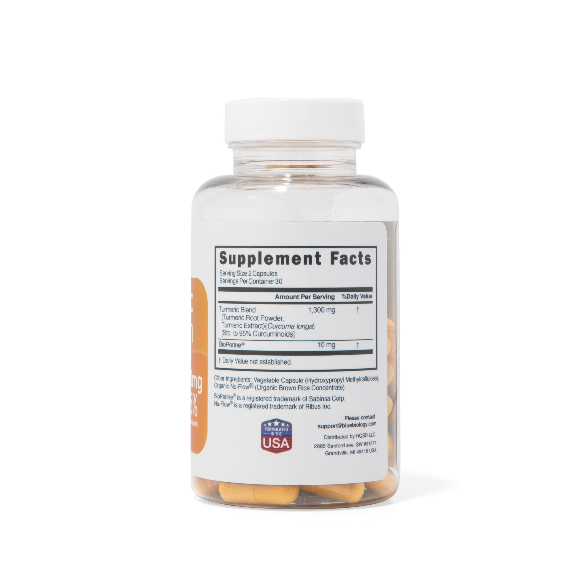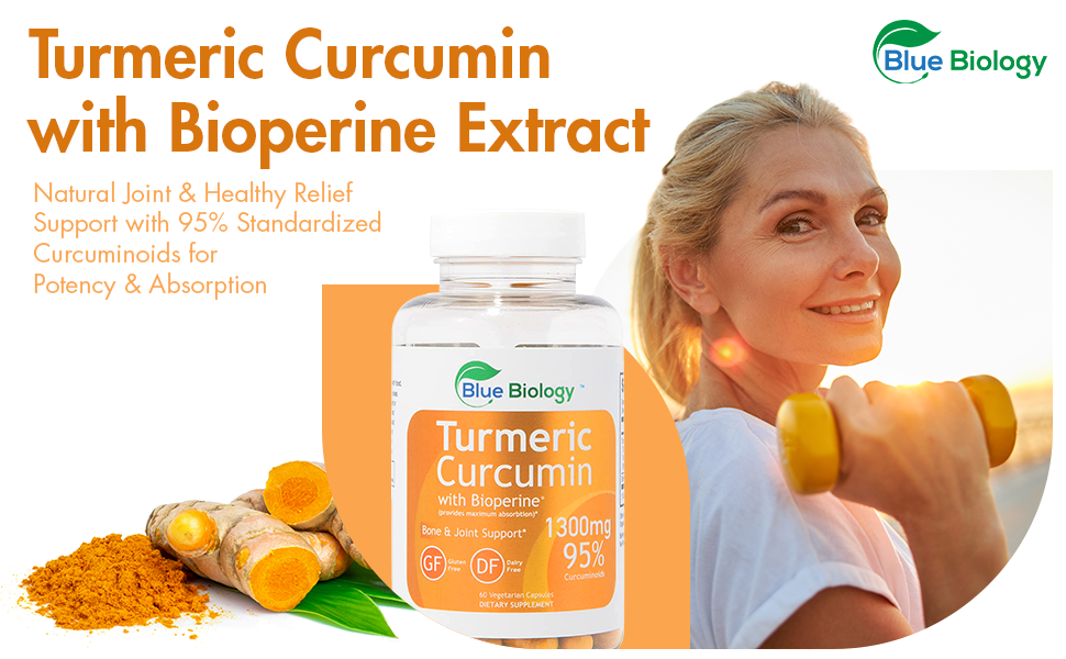 BlueBiology Turmeric Curcumin is a powerful, natural alternative to pain-relief and anti-inflammatory drugs. Turmeric contains curcumin, a naturally-occurring nutrient found in high concentrations of Turmeric plant. Turmeric has been used for medicinal purposes for over 2,000 years. Yet, only recently have scientists been able to extract the pure Curcumin itself. It is effective as an anti- inflammatory for joint pain and antioxidants.